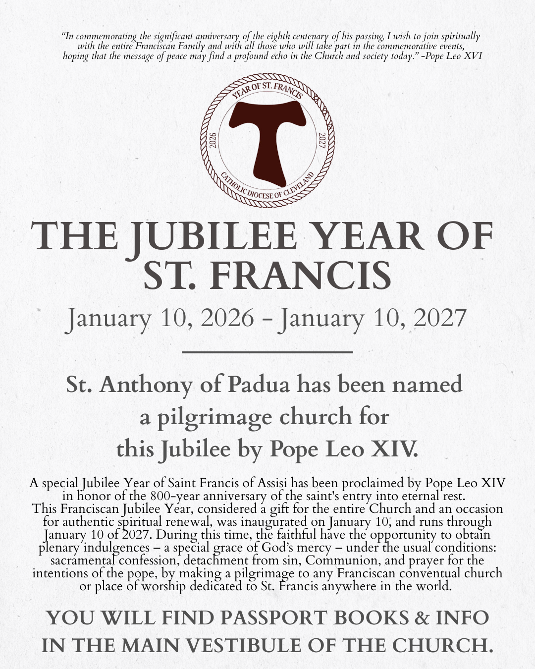 WE ARE A PILGRIMAGE CHURCH FOR THE JUBILEE YEAR OF ST. FRANCIS